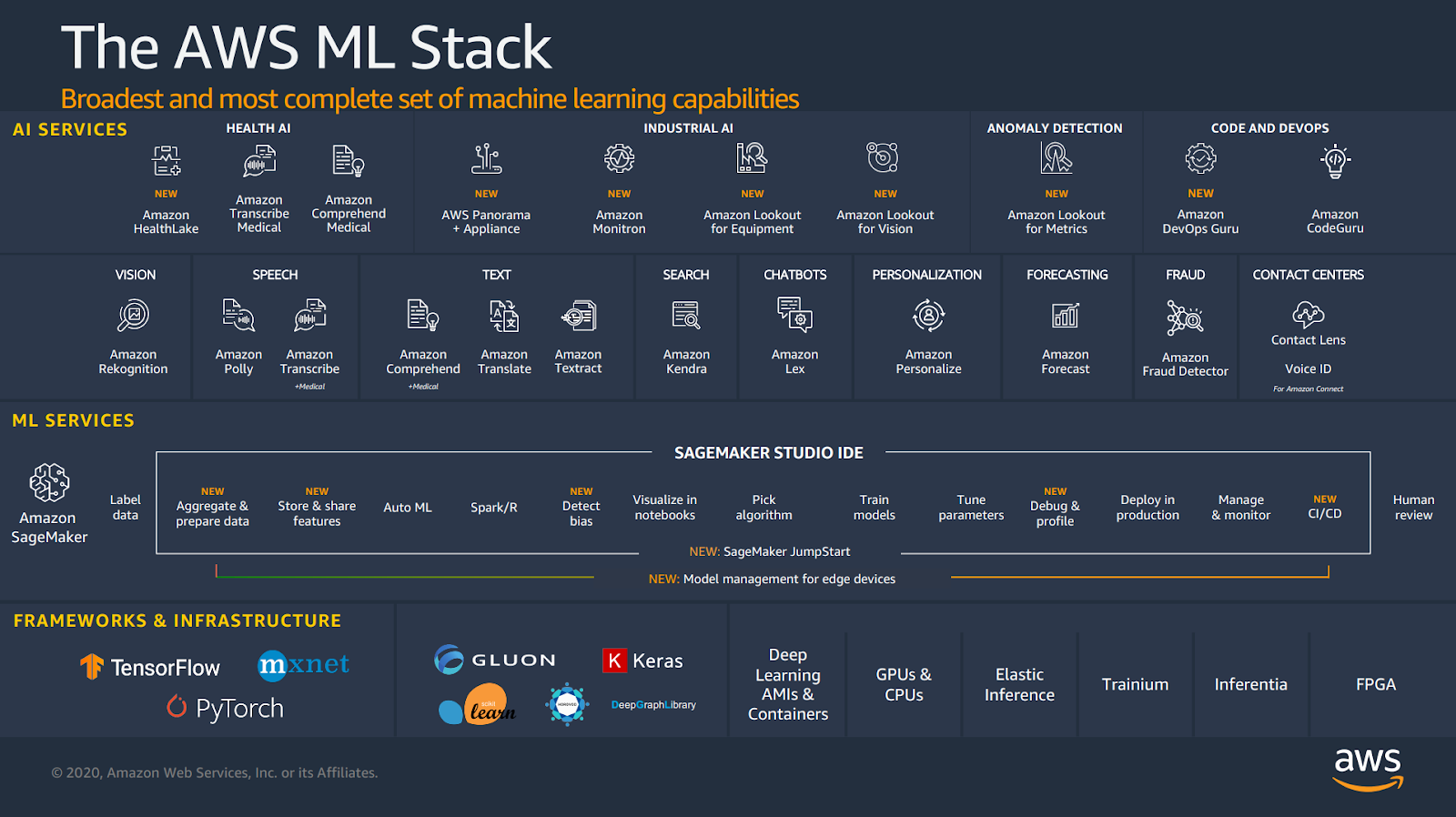 Er du tallknuseren som elsker å dypdykke i de forskjellige lagene og aktiveringsfunskjonene i nevrale nettverk? Ikke det? Kanskje du er hardwarespesialisten som vil sjekke ut hvor raskt du kan trene en modell på NVIDIAs kraftigste GPUer? Eller er du en enkel Webutvikler som vil teste ut og integrere ferdige maskinlæringsløsninger i Webappen din? Du finner uansett det du vil ha i ML-stacken til AWS!
