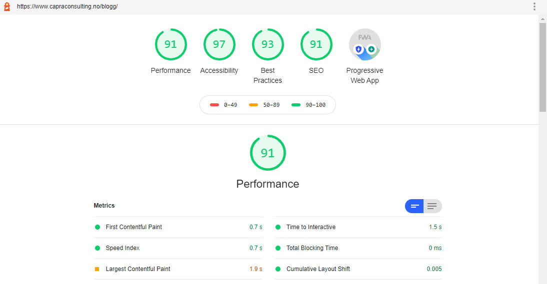 Det skal sies at slike verktøy ikke kan sjekke alt, og det finnes verktøy der ute som egner seg bedre til å sjekke én enkel kategori, for eksempel universell utforming eller performance. Likevel er Lighthouse er et kvalitetsverktøy som dekker flere områder, og i tillegg er gratis.