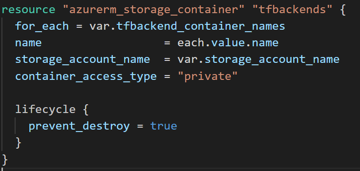 Neste steg er å endre backend i prosjektet til å bruke Azure. For å få til det må du først lage en Storage Account og container gjennom Azure Storage. Her brukte jeg et annet Terraform-prosjekt til å lage en Azure Storage account og deretter en container: