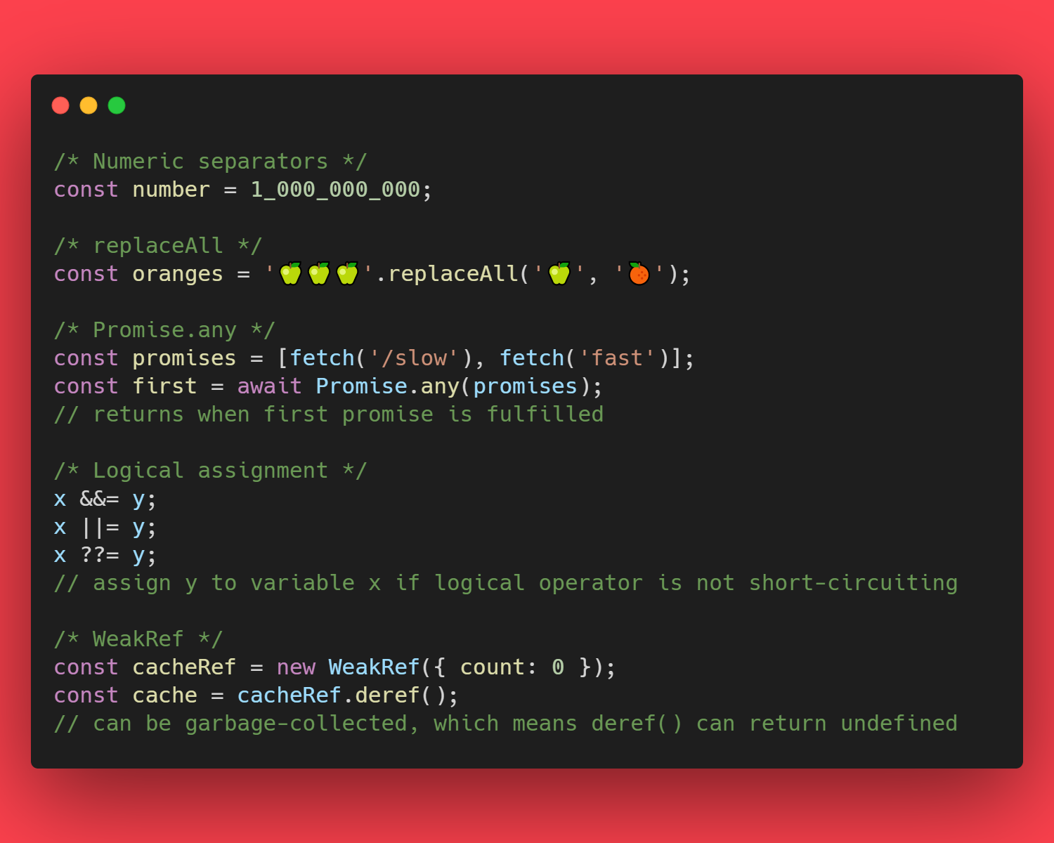 I juni 2021 kom det en håndfull med nye features i JavaScript språket.